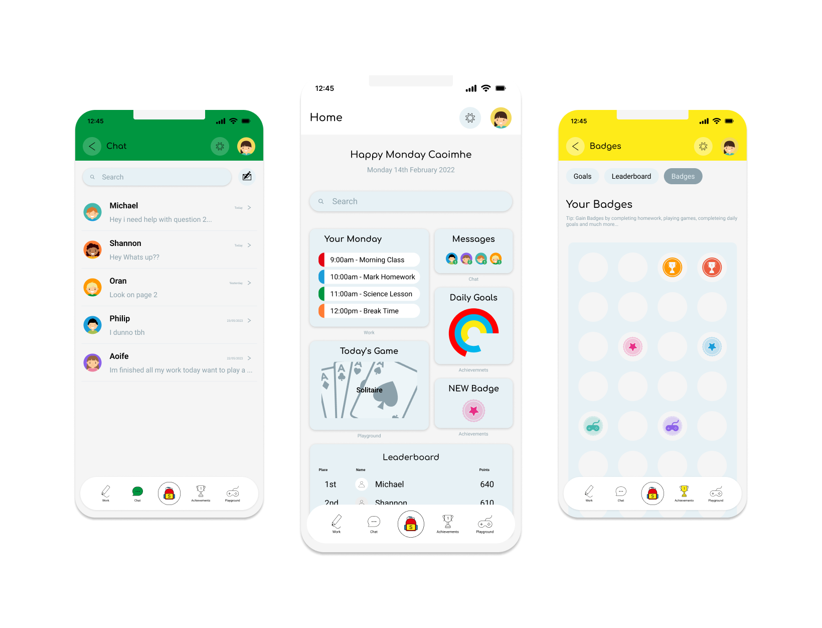When designing the interface, I kept the pages simple to use yet fun to look at, with the aim to keep our primary school users engaged but not distracted. When thinking about how pages would look and work I referred to Jakob's Law, I set out to make the app look and work similarly to popular mobile interfaces such as apple.